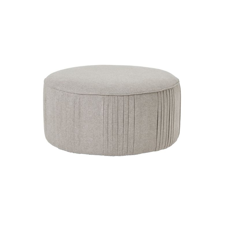 Soft curves, subtle texture, and everyday versatility — the Andi Swivel Ottoman by Sage & Wyld is a modern essential designed with quiet elegance in mind. Upholstered in a beautifully tactile oatmeal-toned twill, its cylindrical form features tailored vertical pleat detailing that adds refined dimension while maintaining a soft, minimalist feel.