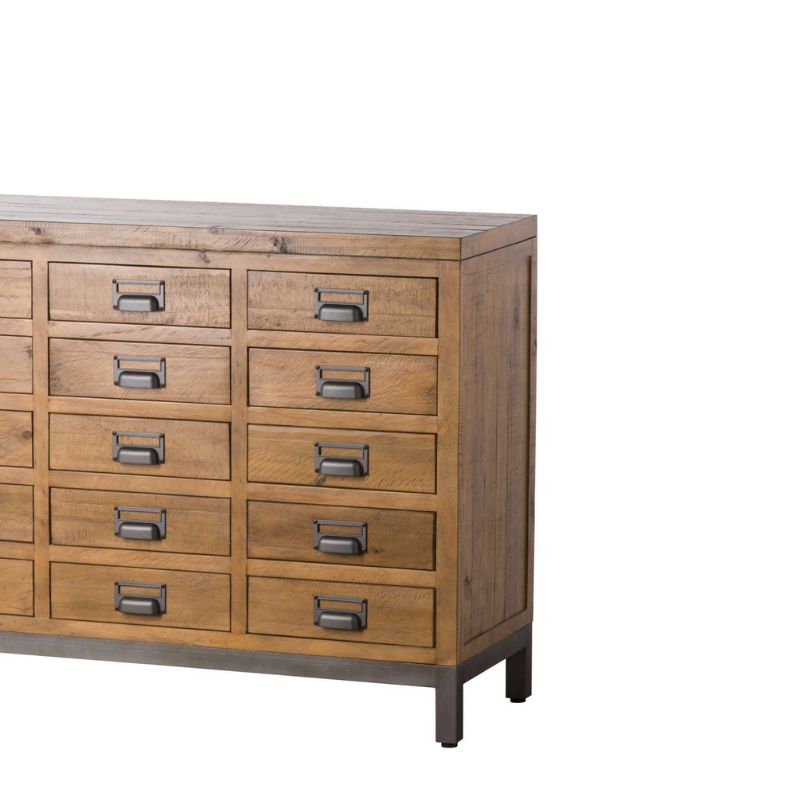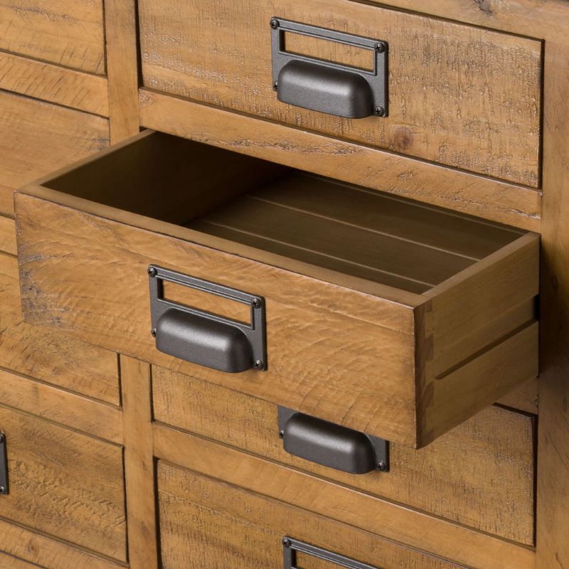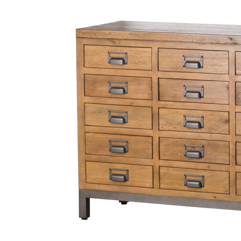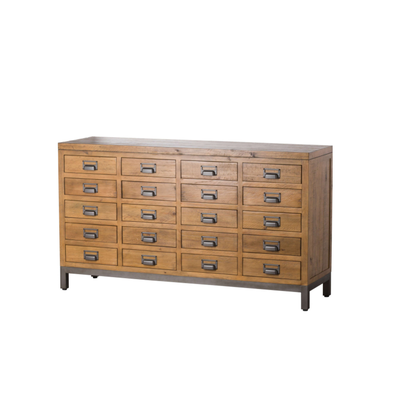 Inspired by vintage apothecary cabinets and timeless industrial design, the Bletchley Merchant Chest by Sage & Wyld delivers both character and function in equal measure. Built with solid timber construction and finished in a warm, weathered wood tone, this substantial chest features 20 drawers, each fitted with a classic label holder and cup pull for an authentic, archival aesthetic.