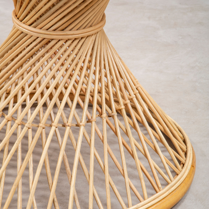 Sculptural, airy, and effortlessly bold — the Calla Natural Twisted Table by Sage & Wyld is a design-forward accent that brings organic movement and modern texture into your home. Its distinctive hourglass silhouette, formed from intricately wrapped natural rattan, creates a beautiful interplay of negative space and structural form.