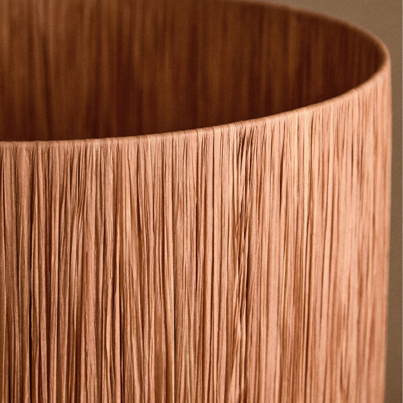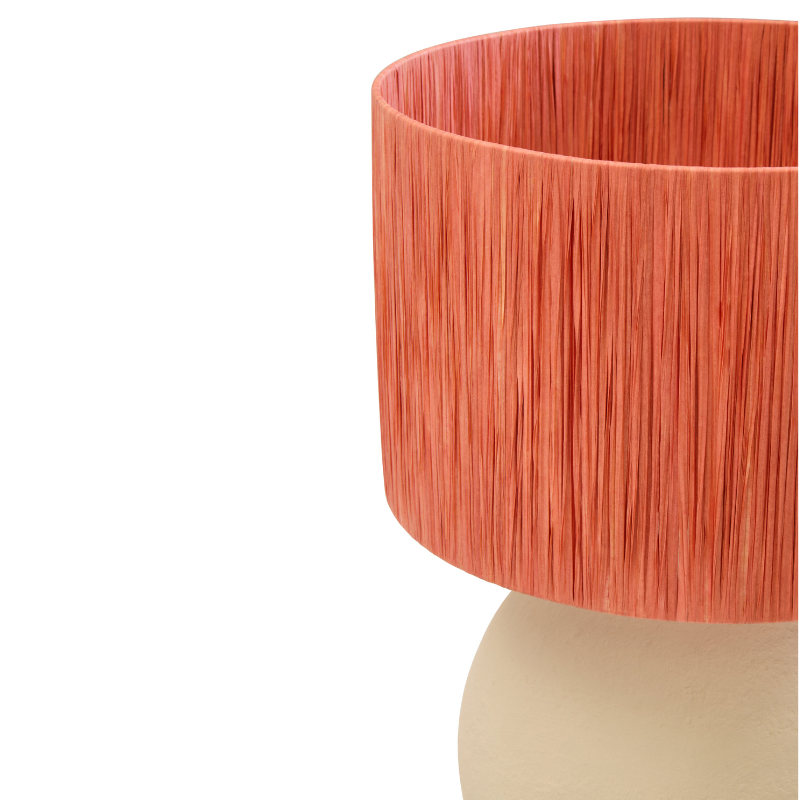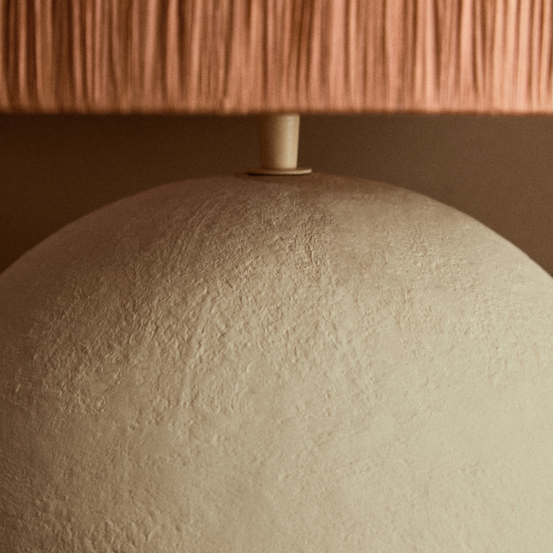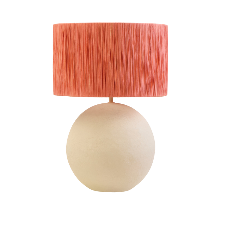 The Eabha Table Lamp is a refined blend of earthy texture and warm-toned elegance. Its rounded base is handcrafted with a natural, stone-like finish that adds an organic touch to your space. Topped with a coral-toned pleated paper shade, this lamp softly diffuses light while adding a pop of colour and visual interest. Perfect for creating a calming, contemporary atmosphere in bedrooms, living rooms or entryways.