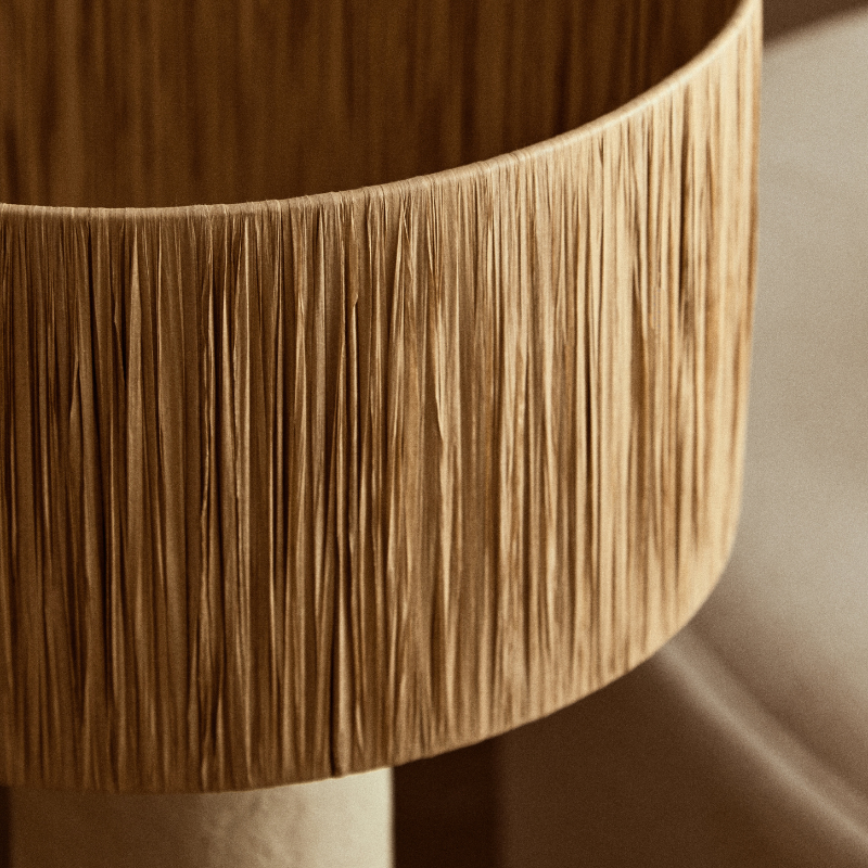 The Eimear Table Lamp blends organic textures with sculptural simplicity to bring a warm, artisanal touch to your interior. Featuring a tall cylindrical base finished in a natural stone-like texture, it is complemented by a pleated paper shade in a soft, neutral tone. Its refined silhouette and earthy palette make it an ideal accent for calming, nature-inspired spaces.