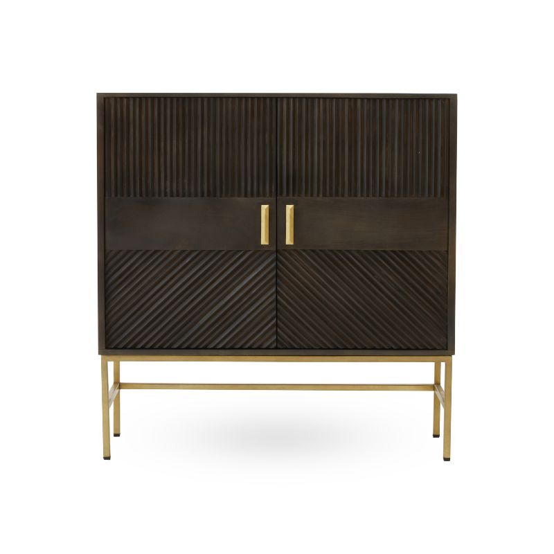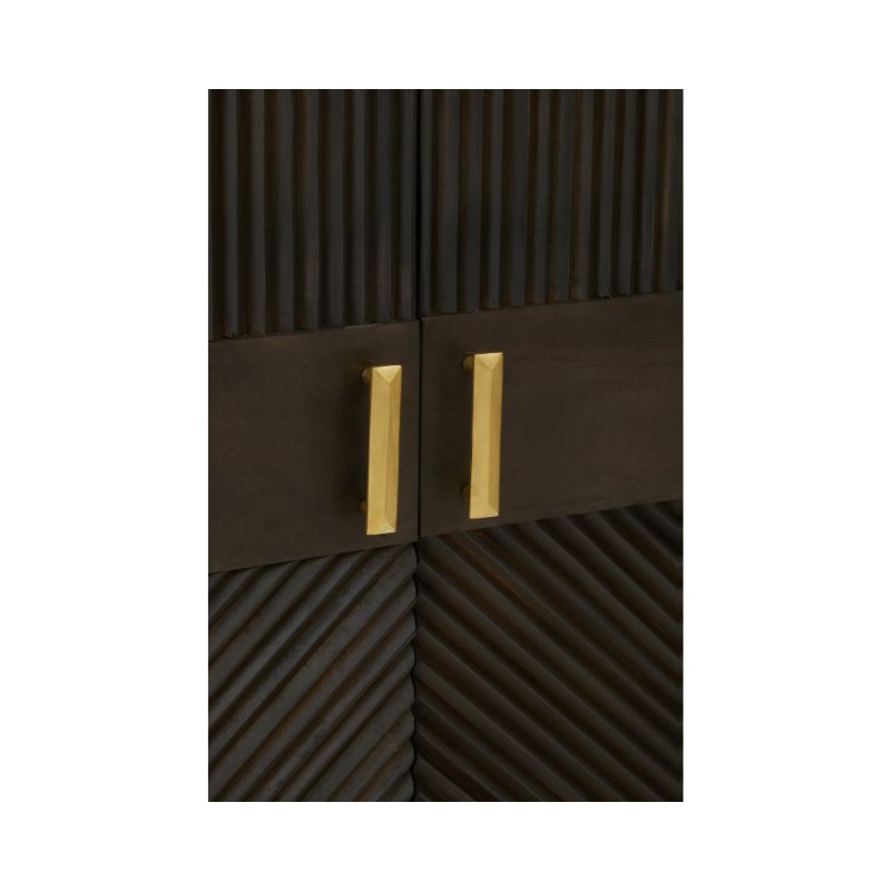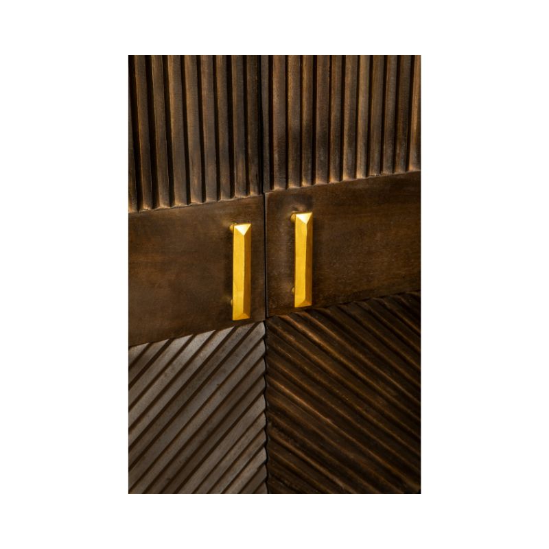 The Jaguar two door storage sideboard is the ultimate in understated luxe. The sophisticated groves of the mango wood along with the brass finished handles and base makes this piece timeless and elegant in equal measures. Serving style and function, this sideboard will fit seamlessly with your room's aesthetic.