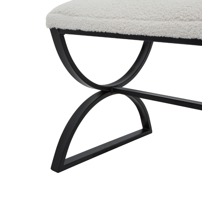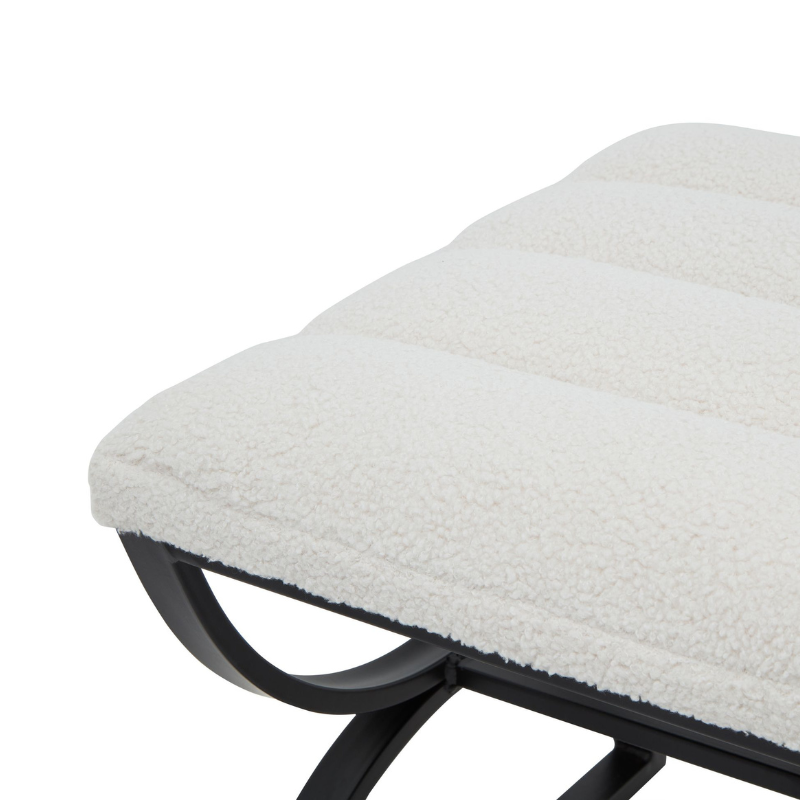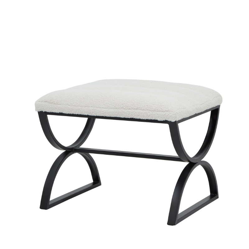 A perfect blend of modern design and cozy texture, the Kaye Ribbed Boucle Foot Stool is a chic and functional accent piece. Its compact form and sculptural metal base make it an eye-catching addition to contemporary interiors, while the plush boucle upholstery provides luxurious comfort.