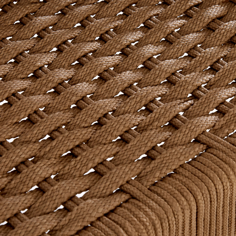 Handwoven rope frame for textural depth and durability.