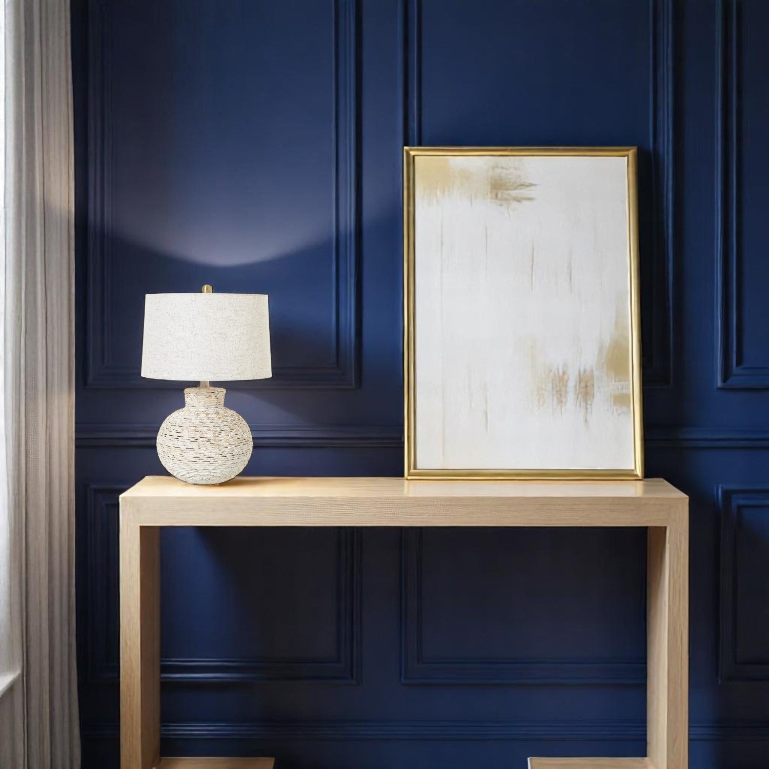 Bring a soft, organic warmth to your space with the Pagham Bulbous Wicker Table Lamp. This sculptural lamp blends coastal charm and contemporary elegance with its hand-woven wicker base and a neutral-toned linen shade. The bulbous silhouette adds visual interest, making it an eye-catching accent whether placed on a bedside table, console, or sideboard.