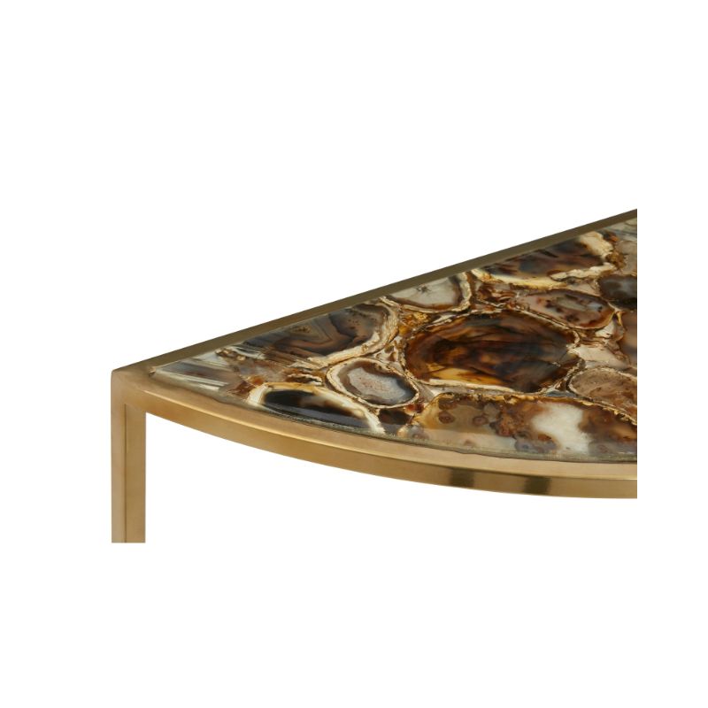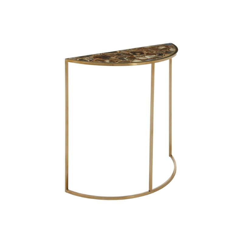 The Penelope Half Moon Black Agate Table Top is designed to sit flush against the wall creating minimalist luxe look. The gold accents truly compliment the semi-precious agate stone that sits on the table top. Sleek and smooth this console table will effortlessly display your items.