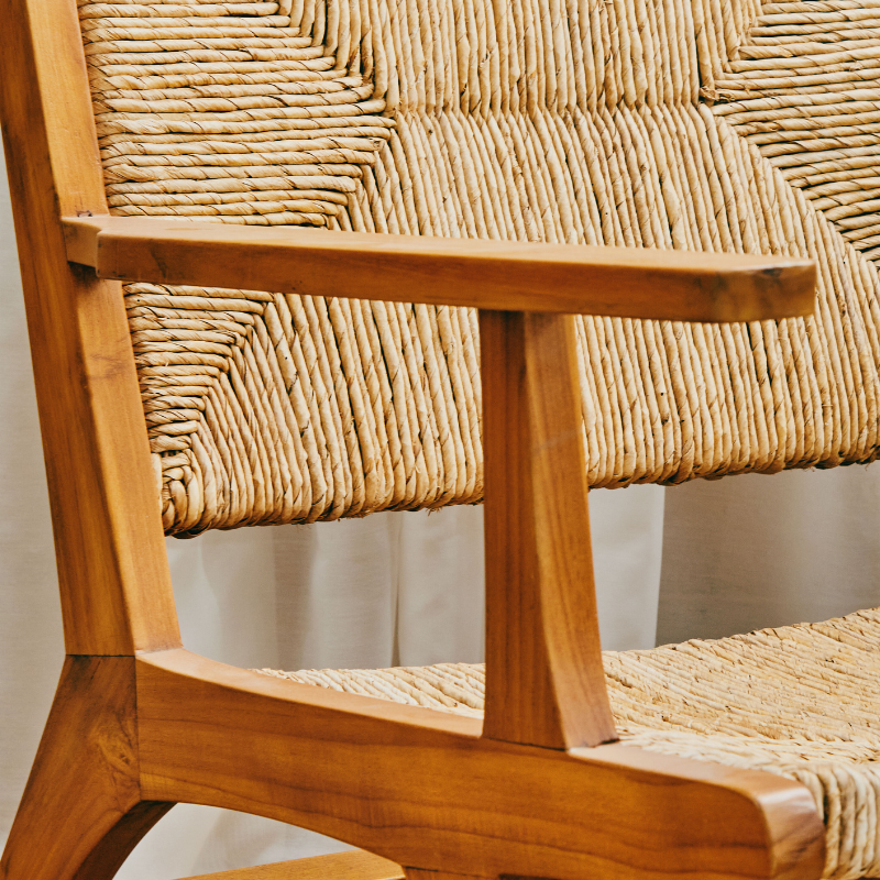 Handcrafted from sustainably sourced teak wood and natural rattan.