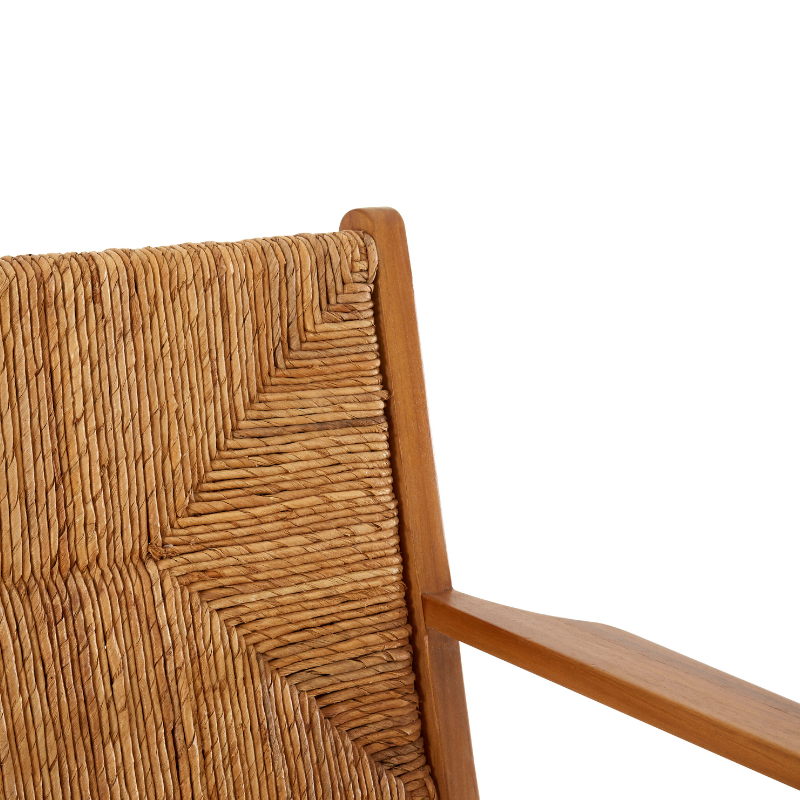 Celebrate organic elegance with the Santa Barbara Armchair, a beautifully crafted piece that combines natural materials with minimalist style. Featuring a gently reclined backrest and slender armrests, this armchair exudes a laid-back coastal charm. Its sturdy teak wood frame is paired with intricately woven rattan, creating a relaxed yet refined silhouette ideal for both indoor and covered outdoor spaces.